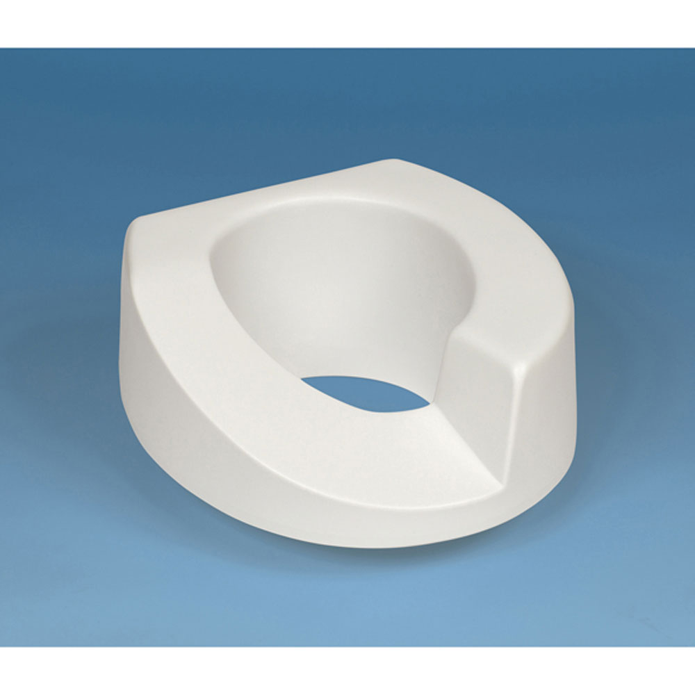 Designed with a gentle slope on one side for people with hip, leg or knee injuries who require an extended leg position. Add 53/4" (14.72 cm) to the bowl height. Support up to 300 lb. (136 kg). Weighs 3.5 lb. (1.6 kg).