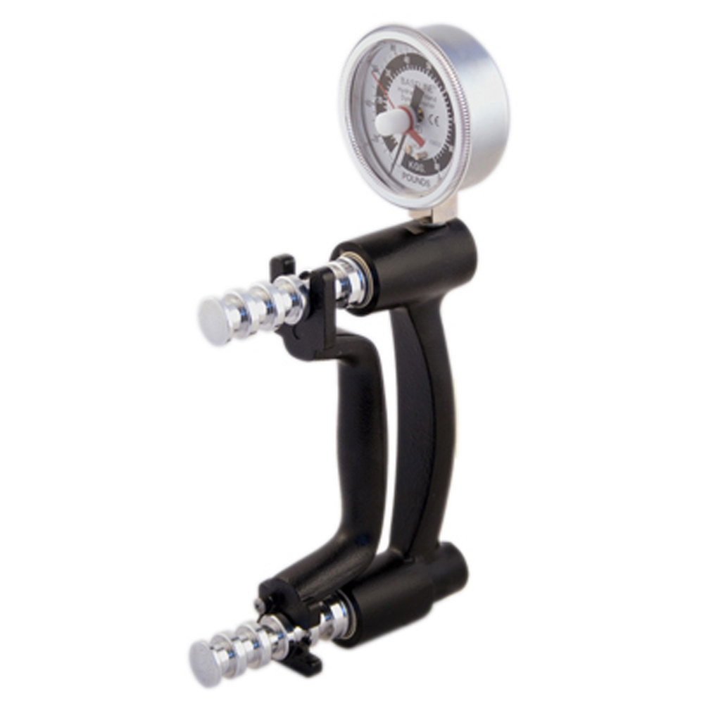 Baseline standard hydraulic hand dynamometer has a 200 pound capacity. Unit has blue body and 2-1/2? analog gauge. Unit has 2 year manufacturer?s warranty. Baseline hydraulic hand dynamometer gives accurate grip strength readings without the subject being able to "feel" the handle move. The internationally accepted design ensures reliability, user convenience and measurement repeatability. Maximum reading remains until the unit is reset. Five position handle and body design yield results that are consistent with published Baseline and Jamar studies. The strength reading can be viewed as pounds or kilograms. CE Certified. Comes in a protective carrying case. Standard - 200 lb. Capacity - blue, 2 year warranty