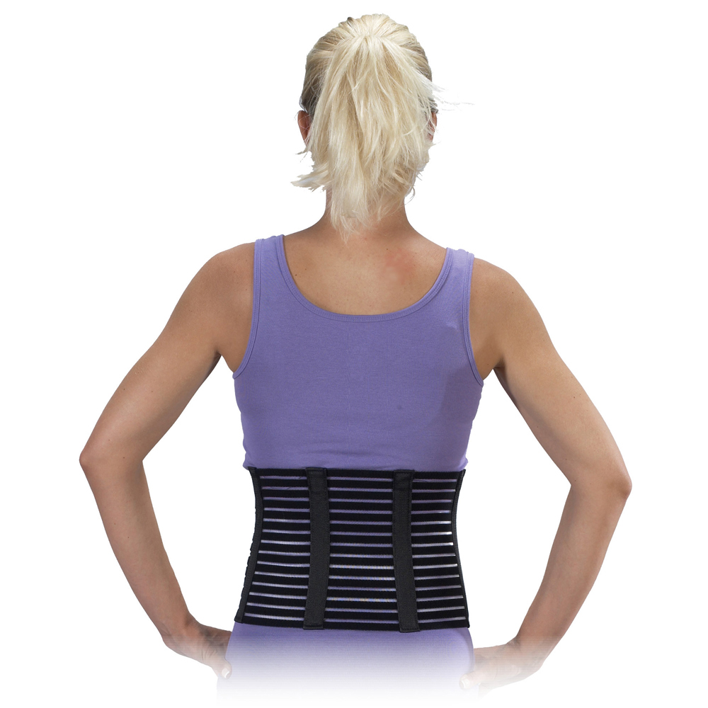 This latex free lumbar sacral support helps provide support and compression to the lower lumbar region and abdominal area