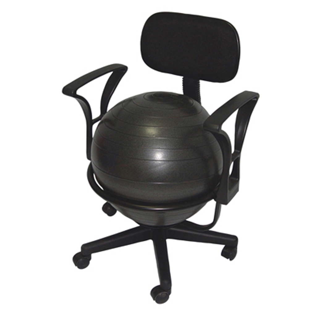 CanDo metal ball chair includes a 55 cm inflatable exercise ball and chair base. The mobile ergonomic seating systems combine the benefits of ball therapy with the convenience of a chair base. Ball held securely in place by the base. Casters glide on carpet or hard surfaces. Light assembly required. The metal ball chair is available with our without arms. Metal - Mobile - with Back - no Arms - with 22" Ball