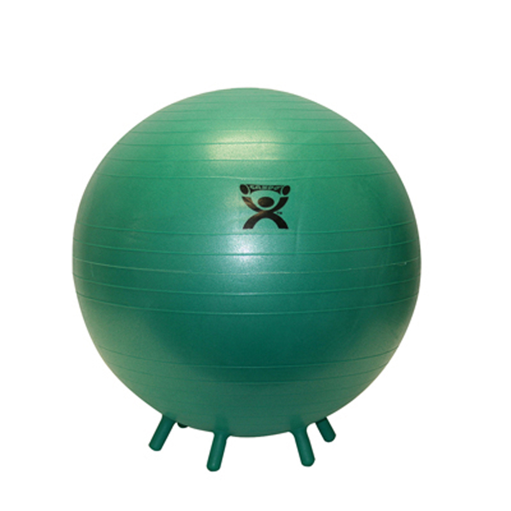 Unique inflatable ball has stabilizing "feet" that keep the ball from rolling when not in use. When in use the weight of the person makes the "feet" retract into the ball so it can function like any other inflatable exercise ball. Non-slip surface is ribbed for extra security. ?Under" inflate to give a soft, mushy feel or fully inflate for a firm, bouncy feel. Ball can support up to 300 pounds. Comes in a polybag. Available in various color-coded sizes. Ball - with Stability Feet - Yellow - 18" (45 cm)