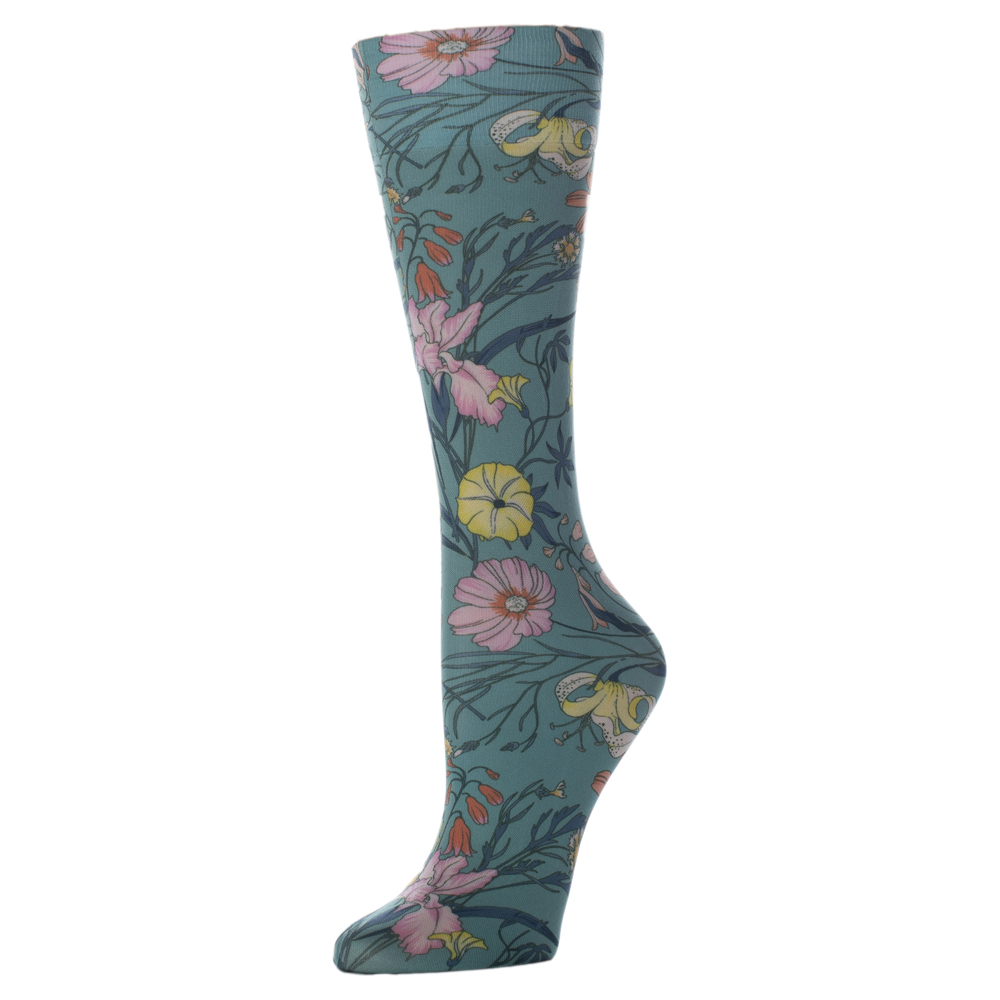 | Celeste Stein Womens 18" Trouser Sock-Turquoise Lilies | 187-2222 | In Stock | 18" |