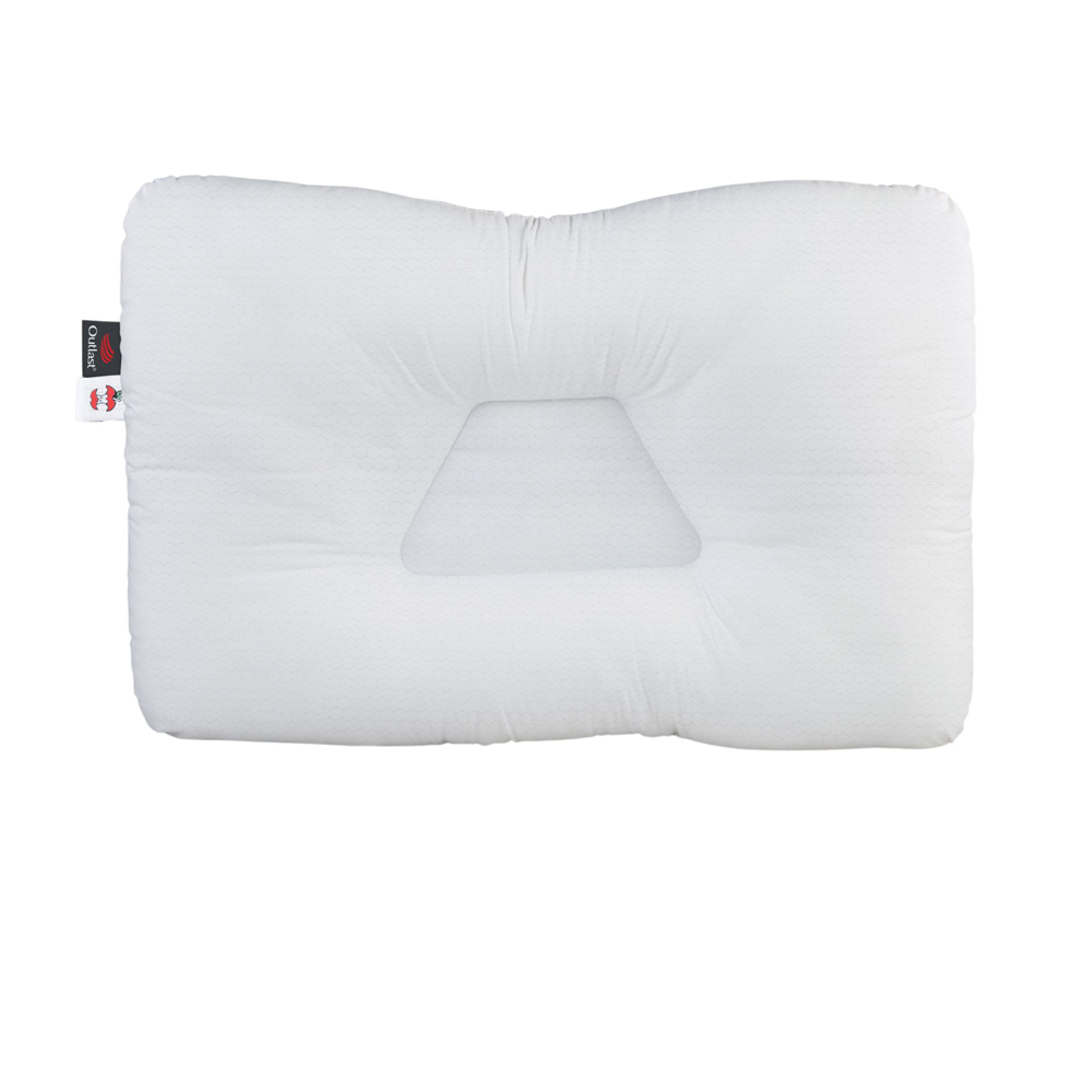 Trapezoid center and patented support lobes cradle the head and support the neck.