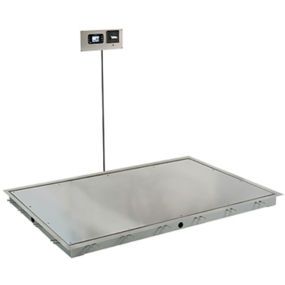 In-floor scales come with model 855RMP digital weight indicator/printer combo, pit frame, scale, stainless steel deck, and trim ring