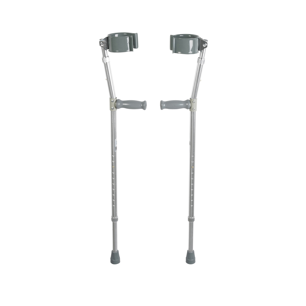 The Lightweight Walking Forearm Crutches by Drive Medical are packed with features. The vinyl coated and ergonomically contoured arm cuffs are molded for comfort and stability. Both the leg and forearm sections adjust independently without tools to ensure optimal comfort and personal sizing. The extra-large tips provide added stability to the crutches.