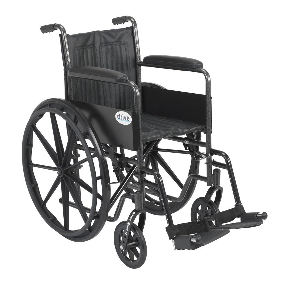 | Drive SSP218 18" Silver Sport 2 Wheelchair-Full Arms-Elevate Leg Rests | SSP218DFA-ELR | 822383242064 | In Stock | 18" Seat | Detachable Full Arms and Elevating Leg Rests |