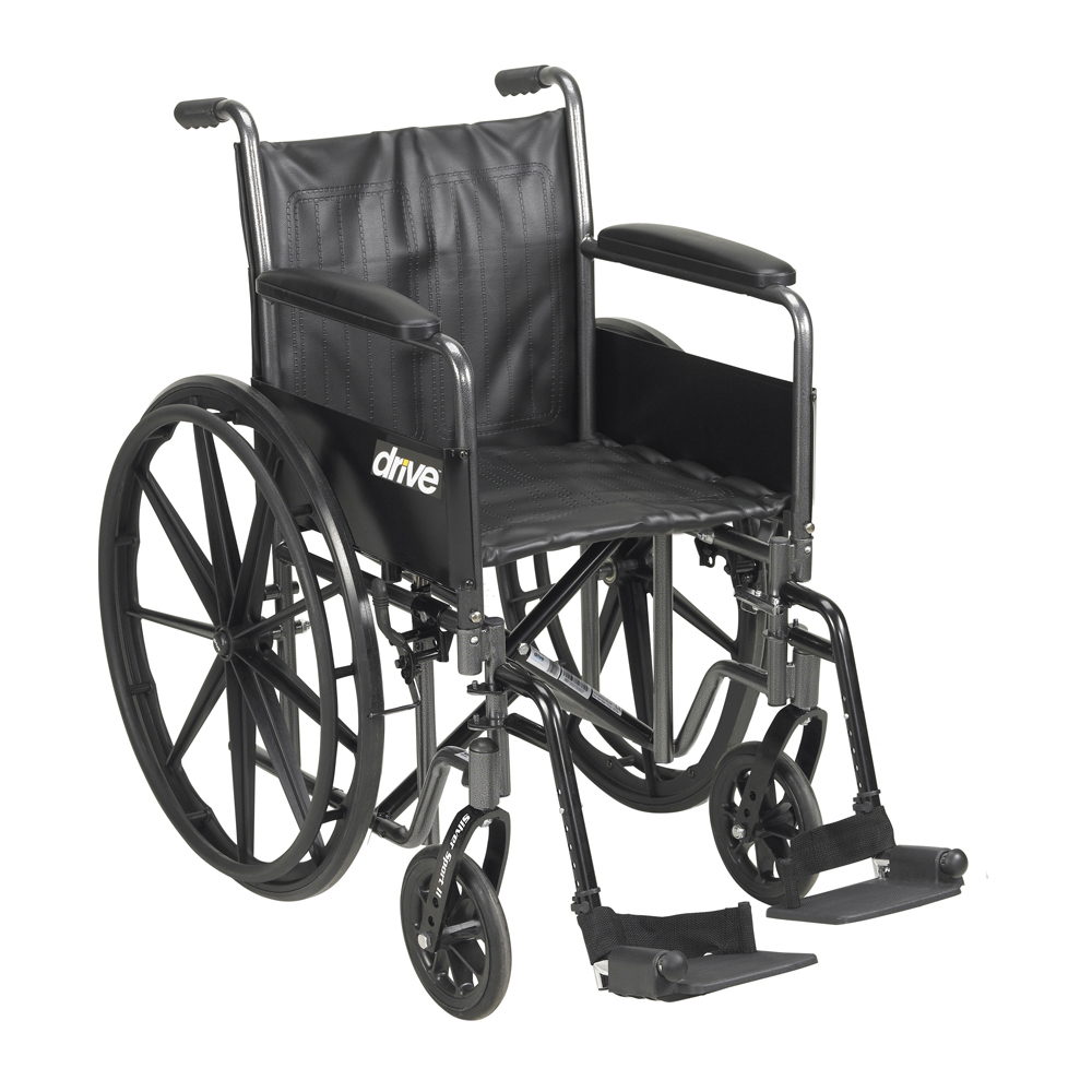 | Drive SSP218 18" Silver Sport 2 Wheelchair-Fixed Arms-Elevate Leg Rest | SSP218FA-ELR | 822383140476 | In Stock | 18" Seat | Non Removable Fixed Arms and Elevating Leg Rests |