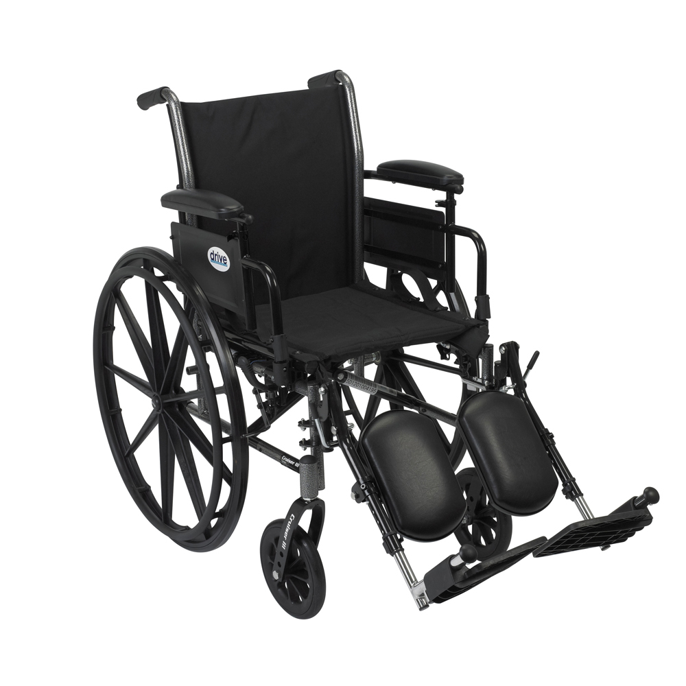 | Drive K320 20" Cruiser III Wheelchair-Full Arms-Elevating Leg Rests | K320DFA-ELR | 822383133904 | In Stock | 20" Seat | Flip Back Removable Full Arms/Elevating Leg Rests |