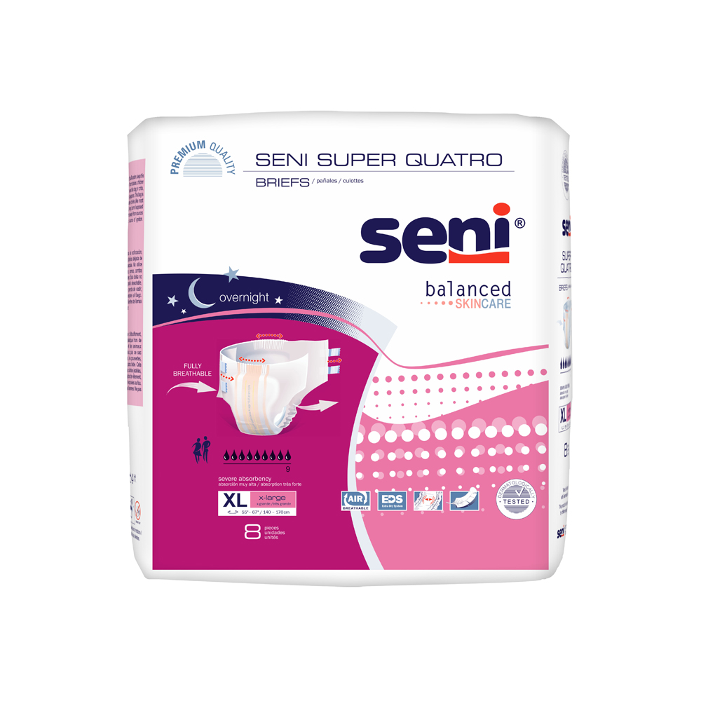 SENI Super Quatro Briefs for Severe Incontinence-2 Packs