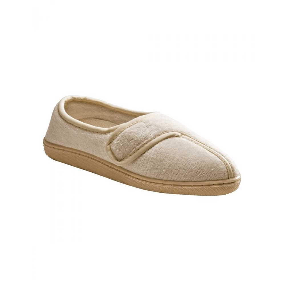 Affordable Easy Touch Slippers are easier for those with limited hand dexterity or arthritis. They are made of soft velour, and have cushioned inner soles. Removable, cushioned insole. The skid slip resistant soles can help prevent elderly falls. Terrific for those with arthritis. These bedroom or house slippers by Silvert make a terrific gift for home care, hospital or nursing home care settings. They are also ideal for those in the home rehabilitation centers, skilled nursing facilities and long term care facilities.