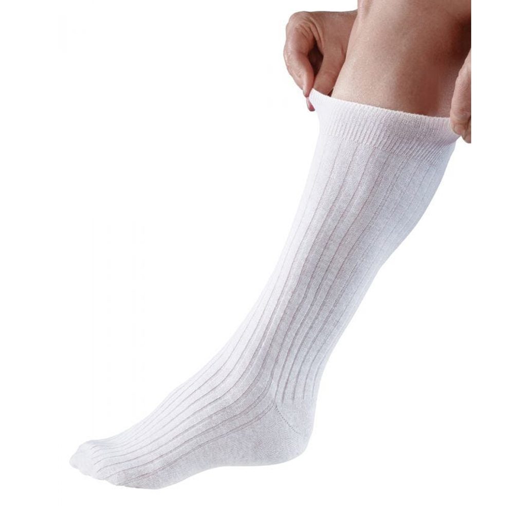 Lightweight Stretch Socks now in a convenient 2-pack. Stretch easily over swollen feet and ankles. Seamless toe for optimal comfort. Two pairs per package. Made of quality machine washable Soft Cotton Knit.
