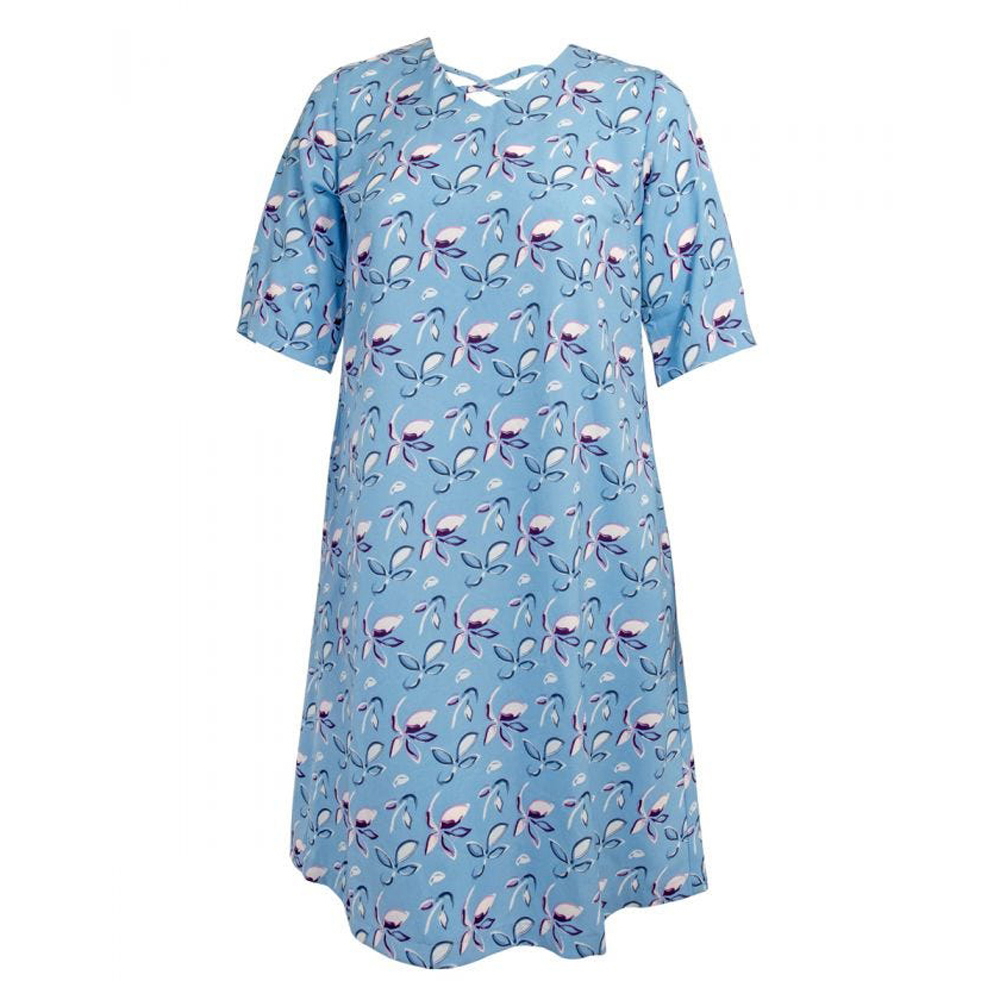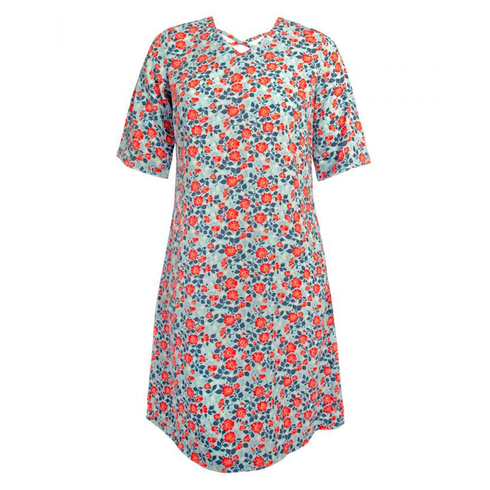 Value-Priced & So Nice Very Flattering and Comfortable Open-Back Dress features a Criss-cross v-neck that provides wheelchair-users with all-day comfort that looks great. Inverted box pleat gives it a generous fit that flows comfortably while sitting. Elbow-length sleeves. Two handy side pockets. Full back overlap with snaps at shoulders. Snap back dresses and back snap dressing solutions make dressing a breeze for both the individual being dressed and the caregiver assisting in the dressing.