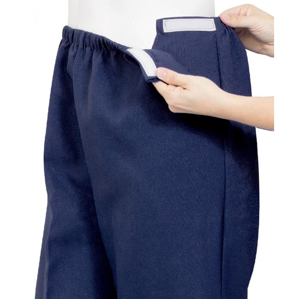 These Easy to Put on Knit Open Side Pants / Slacks offer comfort and convenience to anyone with limited mobility. Adaptive Dressing at its Best, Super soft, polyester knit blend. Adaptive Arthritis Side Opening Knit Pant Slacks with adjustable straps make dressing a breeze! Hook and Loop fastener on both sides of the waistband allow for adjustable, struggle free arthritic dressing. The front fold-down panel provides slip-on ease from a wheelchair or seated position. Side pockets. Quality machine washable super soft 74% polyester, 24% rayon & 2% spandex knit. 31 inch inseam. These handicapped pants / trousers are a great product for home care, retirement, nursing homes and care home settings. A terrific gift for anyone experiencing a handicap whether lowered hand dexterity or limited mobility by Silvert!