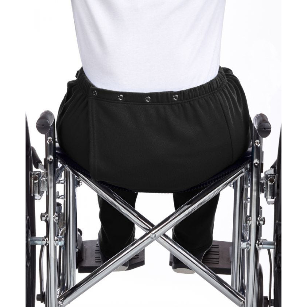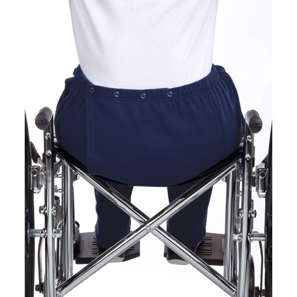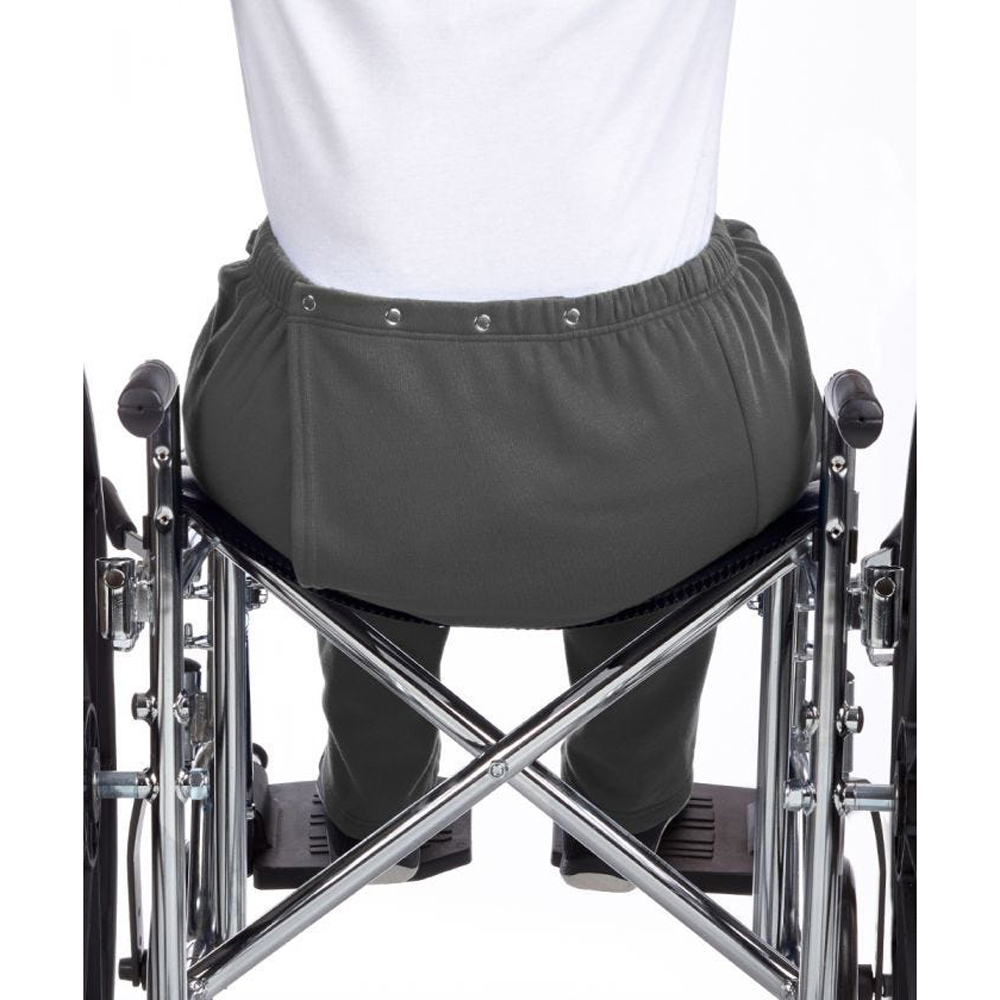 The Discretion offered by Adaptive Open Back Fleece Wheel Chair Pants is terrific for the immobile or incontinent woman. These easy to put on wheelchair clothing sweatpants feature Dome closures at the back of the waistband for easy seated dressing (No standing required). Large overlap back flap provides complete discretionary coverage. 31 inch inseam. These adaptive wheel chair pants and/or incontinence pants are terrific for disabled adults, elderly/seniors who are disabled, handicapped and wheelchair dependent women. These comfortable wheelchair pants are also great for those in skilled nursing facilities, long term care facilities and for home care settings.