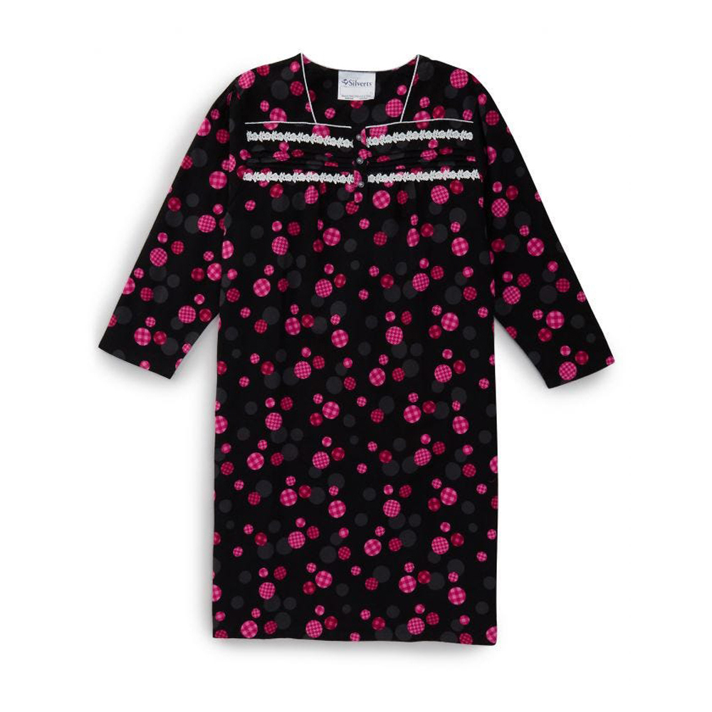 | Silverts SV26300 100% Cotton Flannel Hospital Gown With Snaps-Black Dot-Small | SV26300-SV1406-S | 753084176245 |