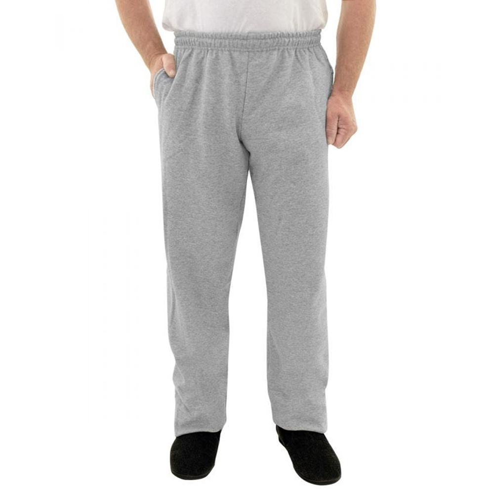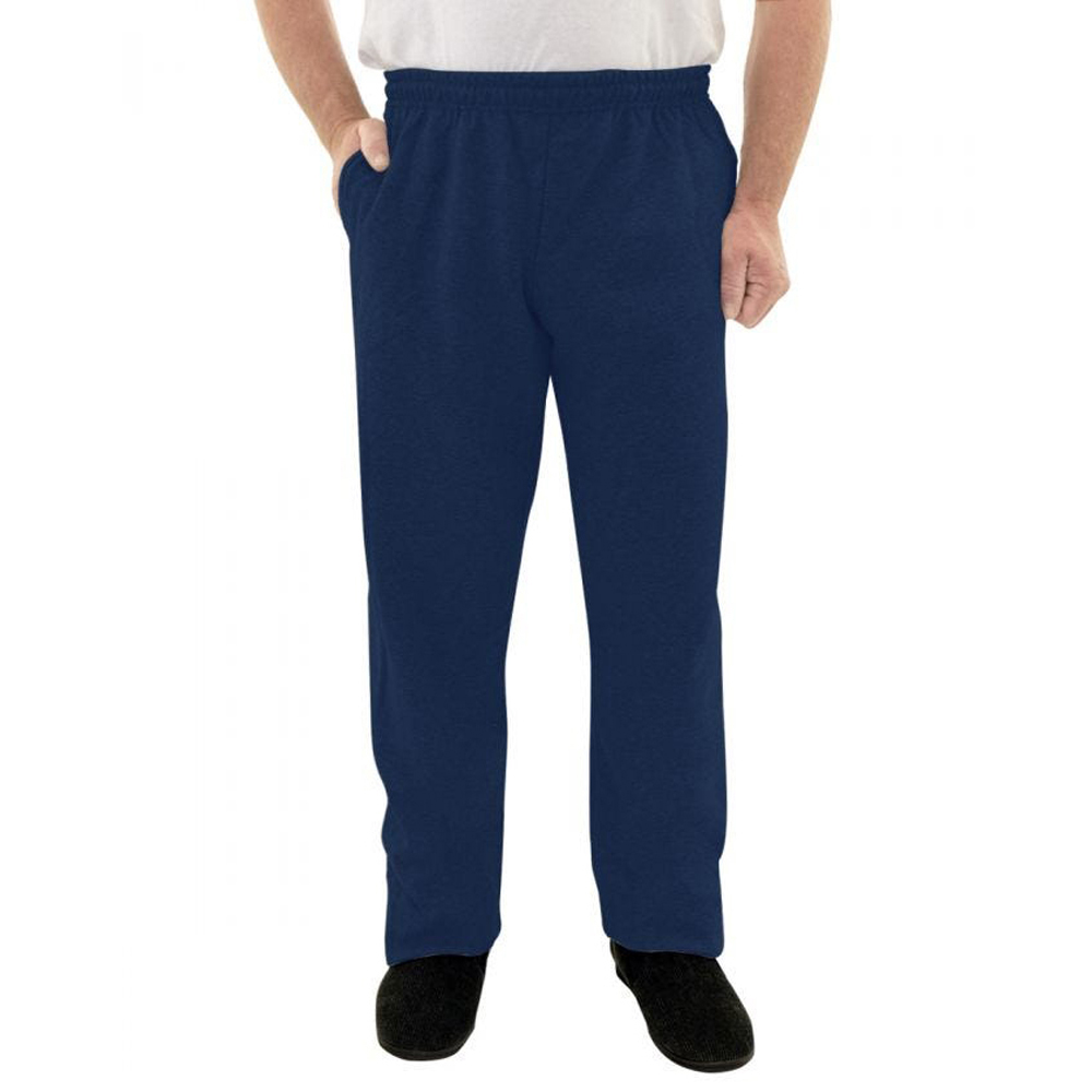 These Comfortable Elastic Waist Fleece Sweat Pants make for a warm cozy casual look. The elastic waistband accommodates weight fluctuation. It has a drawstring waist and two large side pockets. Open cuff leg. These sweatpants by Silvert are made of machine washable quality cotton-polyester fleece.