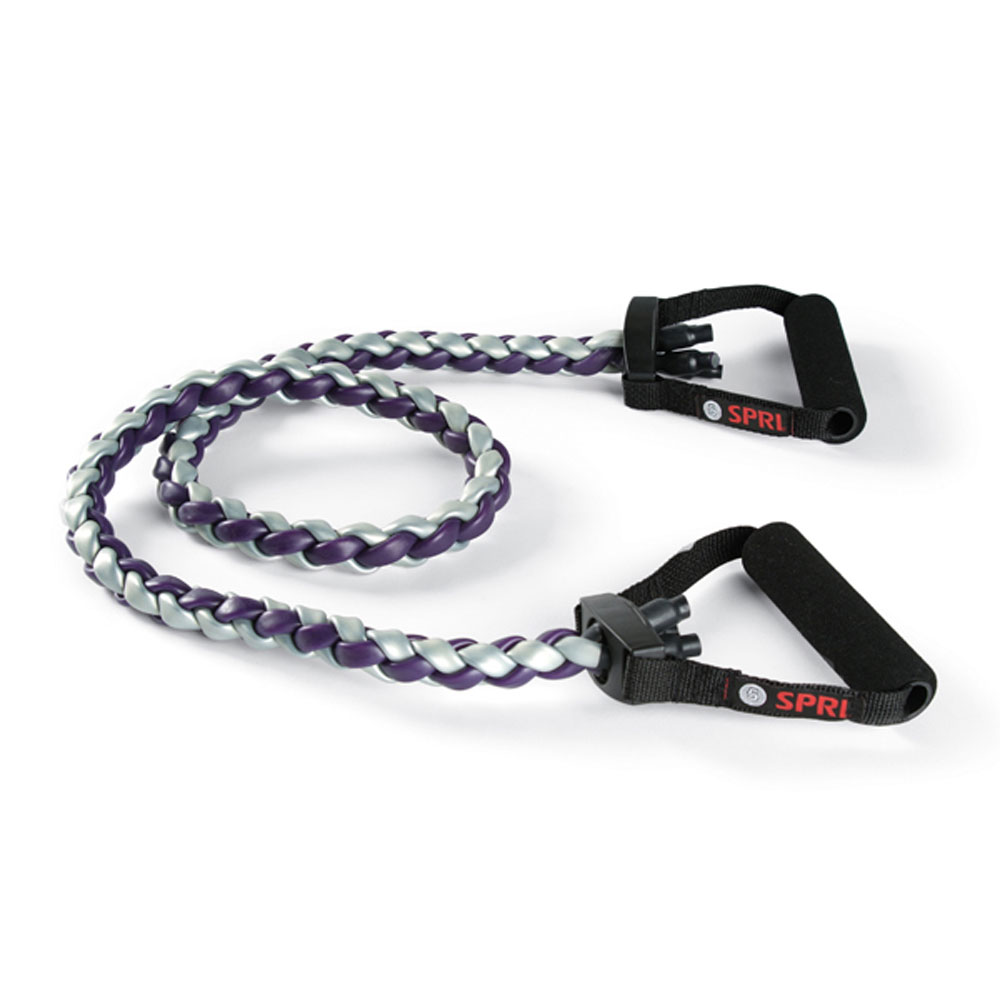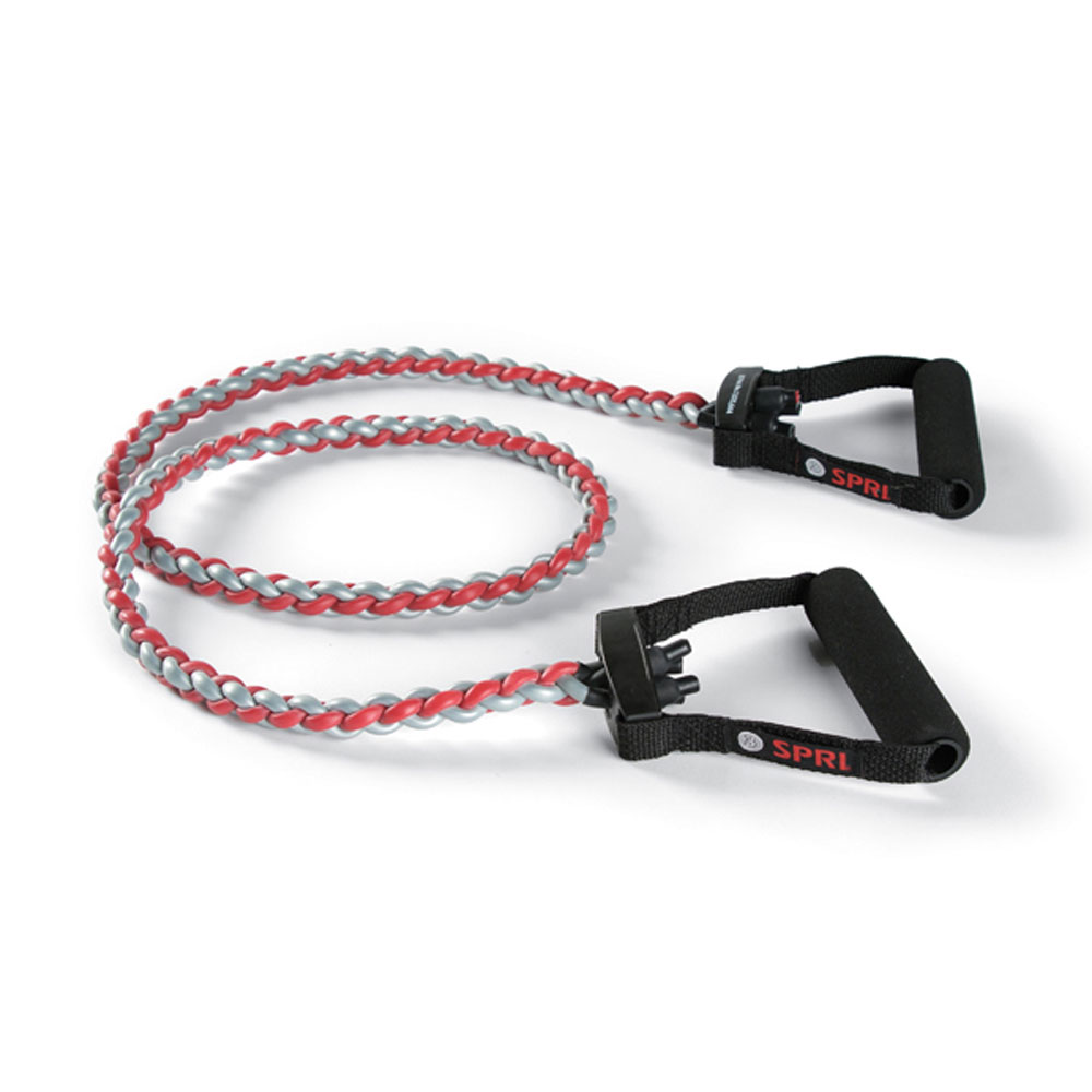 The Braided Xertube takes tubing training to the next level by weaving 4 strands of SPRI's Tuff Tube together using our patented Braided Tubing Technology. Use the Braided Xertube for all of your higher demand tubing exercises that regular tubing just can't keep up with. Enjoy the long-term benefits of this product's enhanced tubing lifespan and integrity. The Braided Xertube comes in 5 varied resistance levels (EACH LEVEL MARKED ON HANDLES) and is available in a silver metallic color braided together with colored tubing making it easy to differentiate between other resistance levels and from the longer version, the Braided Xertube Plus.