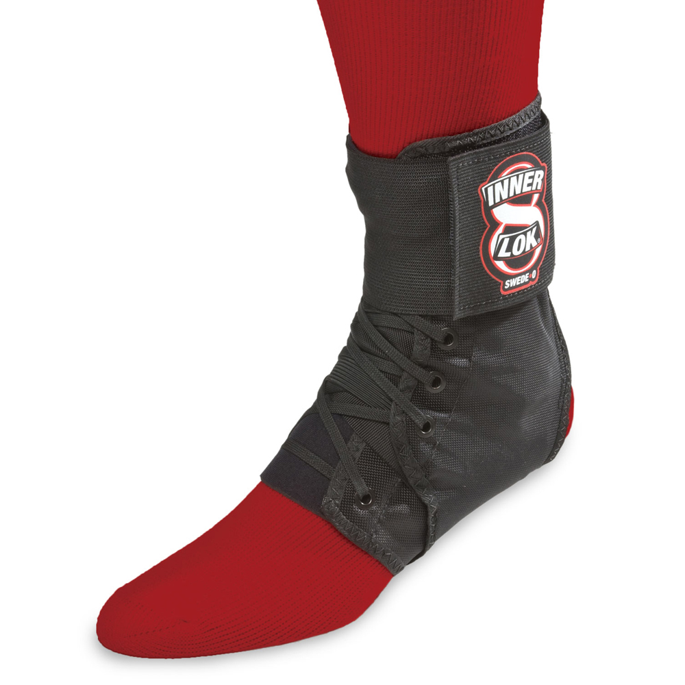 The Brace that gives you Inner Strength. The Swede-O Inner Lok 8 features a patented internal figure eight strapping system that is easy to use and ensures proper strap placement. The figure eight straps provide extra support and simulates the effect of a professional taping procedure to help lock in the ankle in a protected position. A full top strap covers the laces and locks the figure eight straps in position. The new quick-release strap feature makes brace removal quick and easy. The ballistic nylon construction is comfortable, thin and lightweight, yet very durable. The Swede-O Inner Lok 8 includes many exclusive features such as a full elastic back, seamless arch, breathable tongue and is backed by an industry leading 12 month warranty.