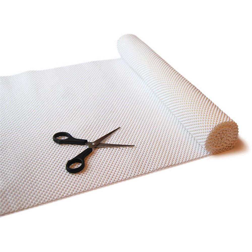 Soft, spongy material roll offers DYI customized solutions for many anti-slip issues. Non-slip, textured netting provides padding for extra comfort and prevents objects from slipping. It can be cut to any size and shape to suit the desired application. Multi-purpose product can be used beneath rugs to prevent slipping, to line drawers, shelves and trays; on chairs, sofas and back rests to prevent individuals from slipping and to help maintain correct posture. Available in white, black and beige. Measures 6 ft x 20 in (183 x 51 cm). Fully washable.