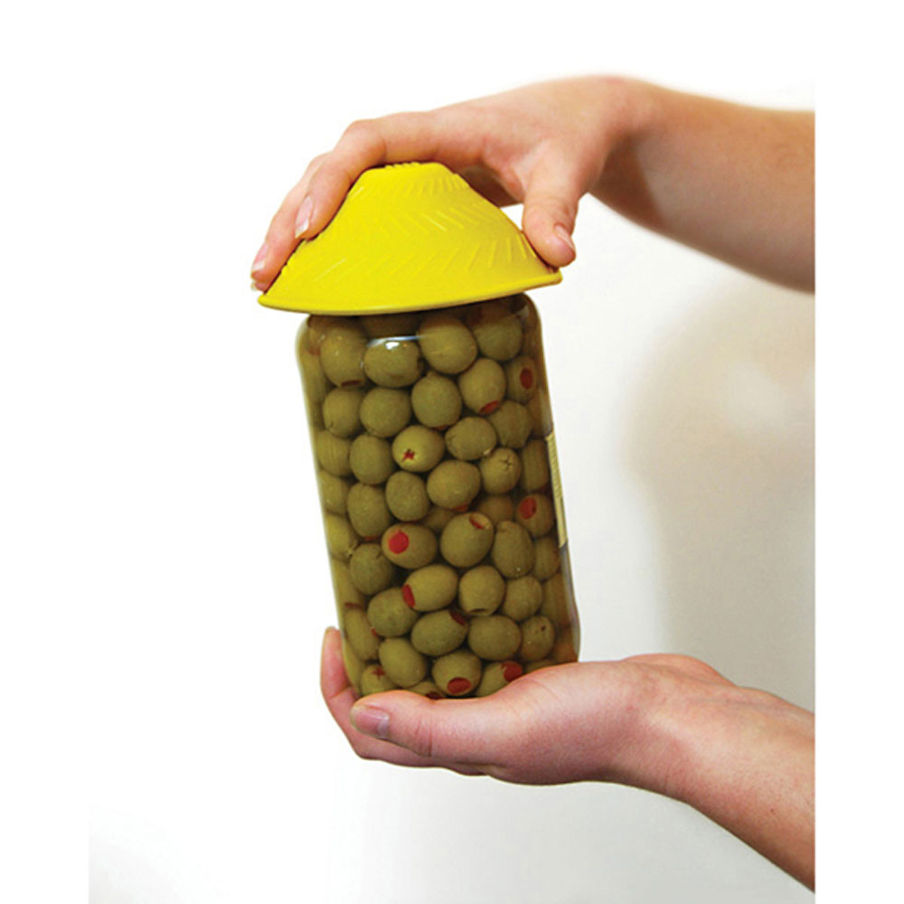 Helps people with reduced grip strength due to arthritis or other hand limitations open jars and containers without much effort. Dome shaped opener is flexible and provides the leverage needed to open even the most stubborn lid. Ridges on the outside help to maintain a non-slip grip. Designed to fit a variety of jar sizes and shapes, as well as handles and doorknobs. Can be operated with one hand with the use of a Tenura mat (75372 and 75373 series) on the base of the jar. 4.6 inch (11.8 cm) diameter. Autoclave, dishwasher and microwave safe. Available in red, blue and yellow.